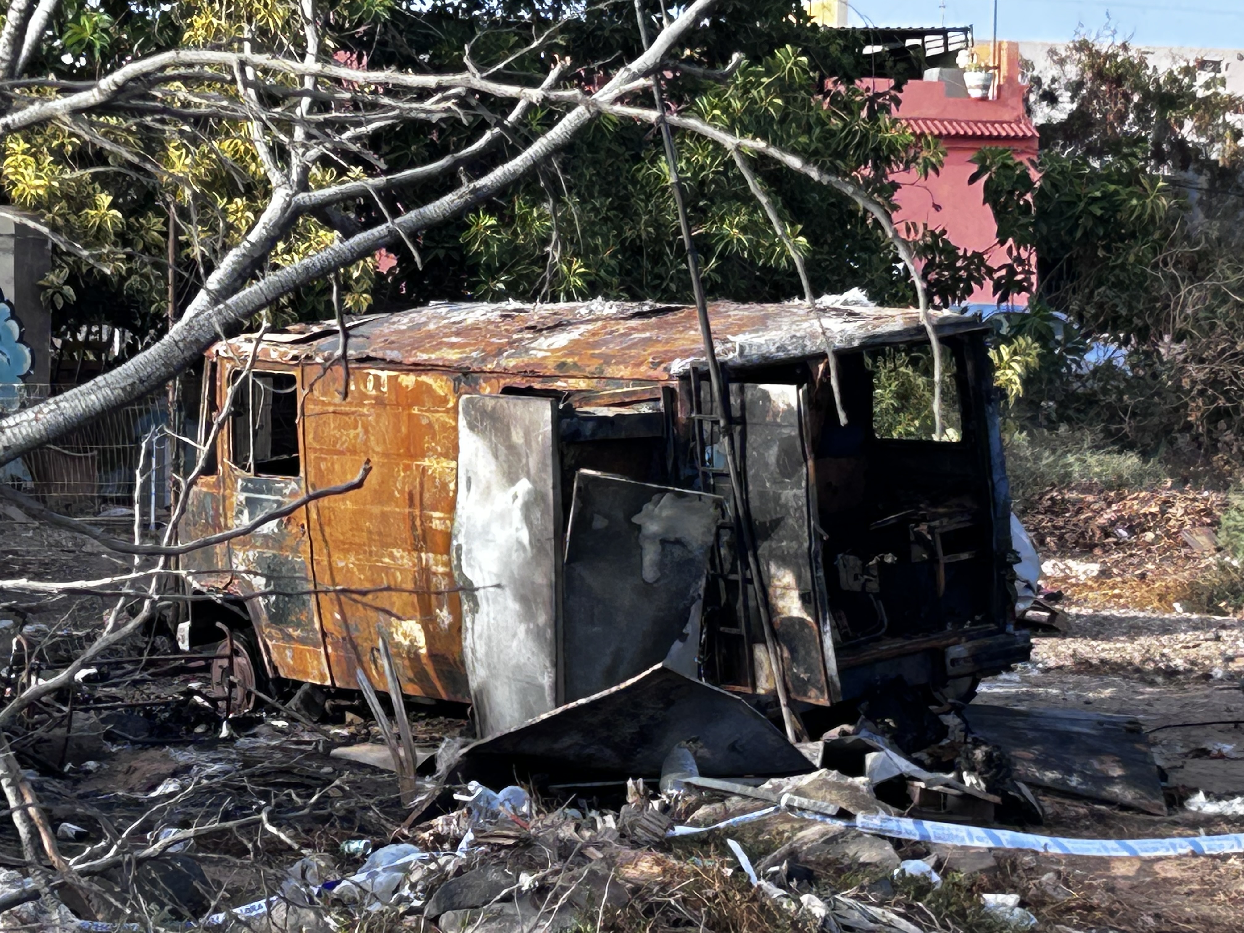 A ocho días del incendio que conmocionó al barrio de Ojos de Garza, donde se halló un cuerpo calcinado dentro de una furgoneta, la escena del crimen permanece sin custodia ni protección. Pese a que la investigación sigue abierta y una sospechosa fue enviada a prisión provisional, el lugar ha sido ocupado por una pareja y el vehículo carbonizado permanece expuesto, sin vigilancia ni señalización policial.