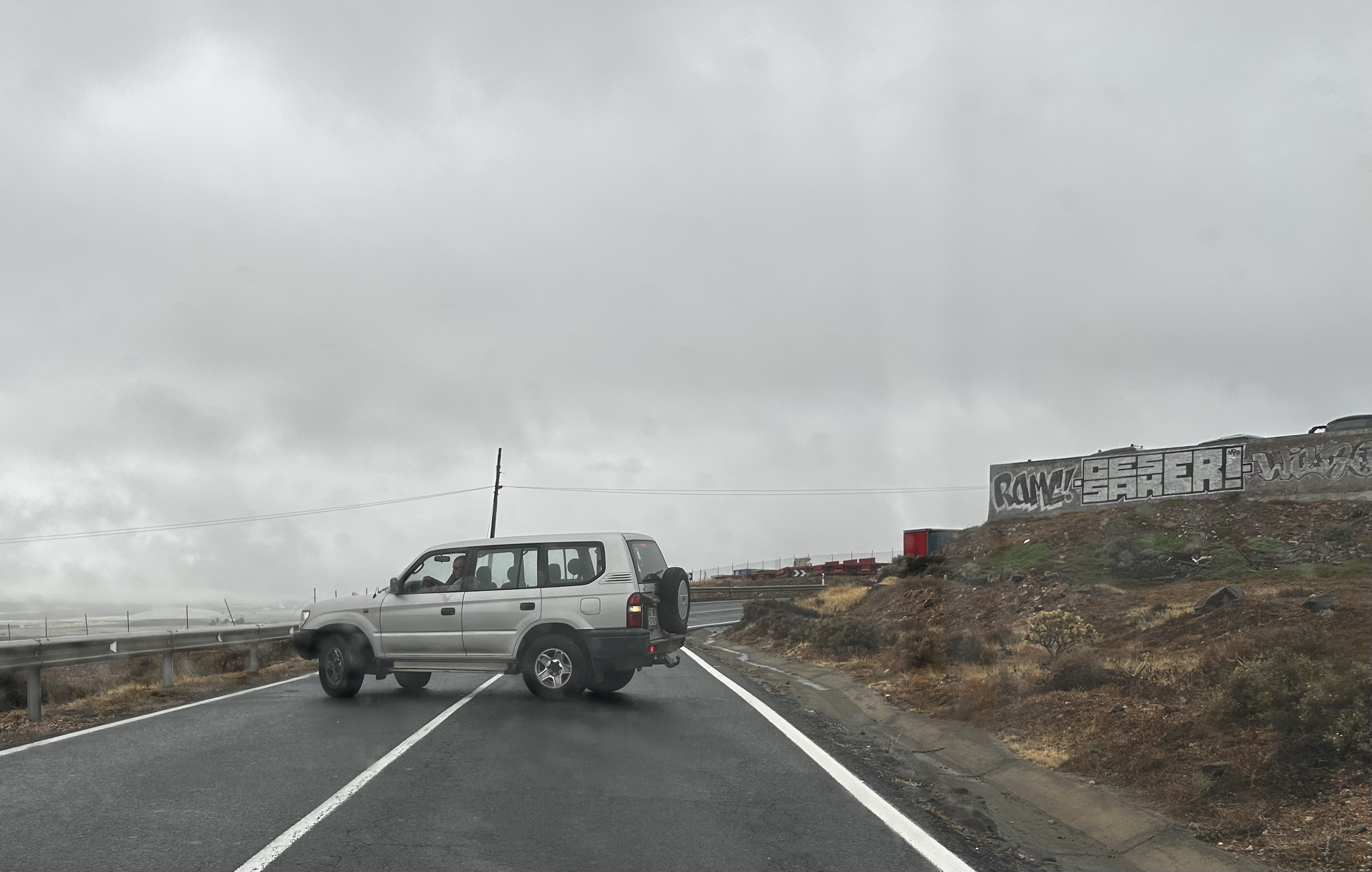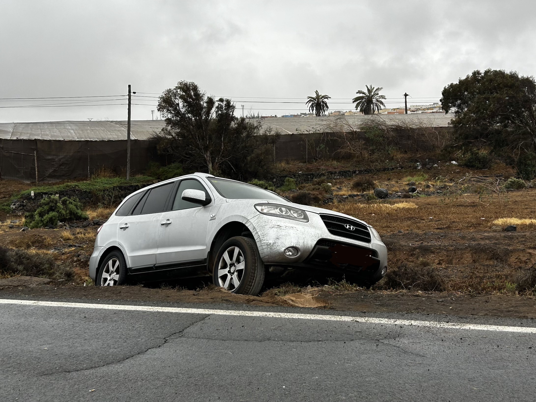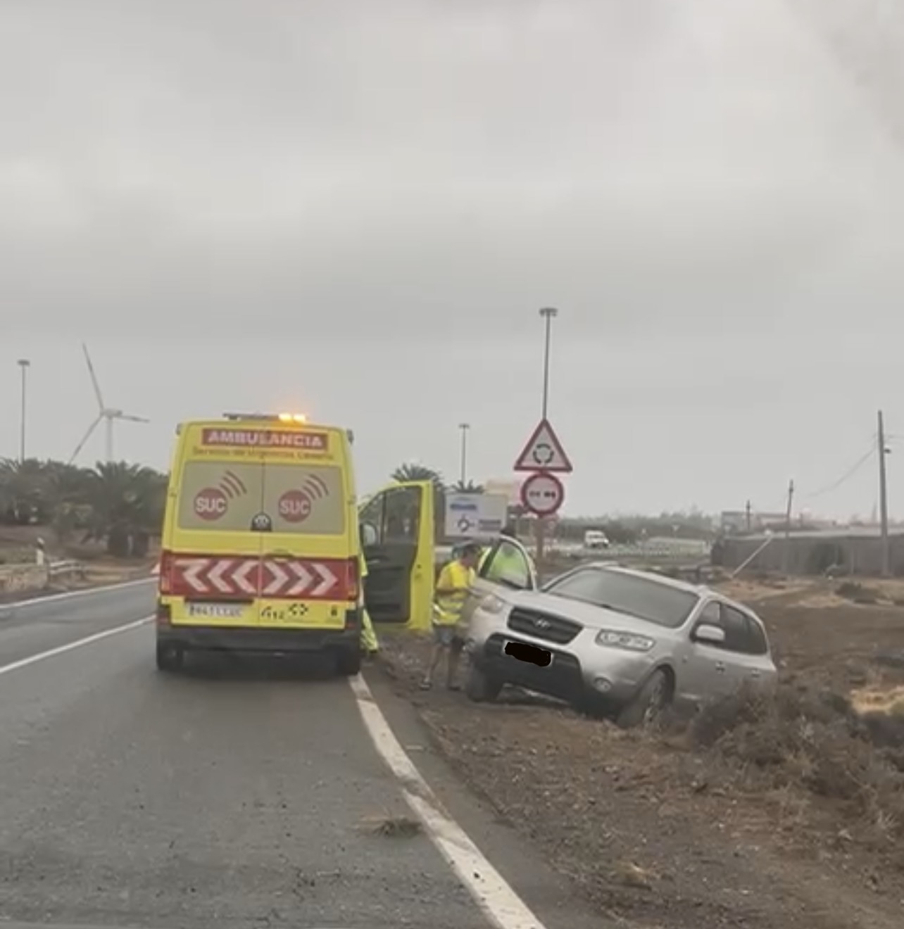 Las primeras lloviznas del otoño han dejado más que humedad en el municipio. En un solo día, tres vehículos han sufrido accidentes por derrape en la carretera que conecta el cruce de la base aérea de Gando con la zona de Cuatro Puertas. Las imágenes que acompañan esta noticia, enviadas por vecinos, muestran claramente el patrón: coches cruzados, salidas de vía y maniobras de emergencia en el mismo tramo.
